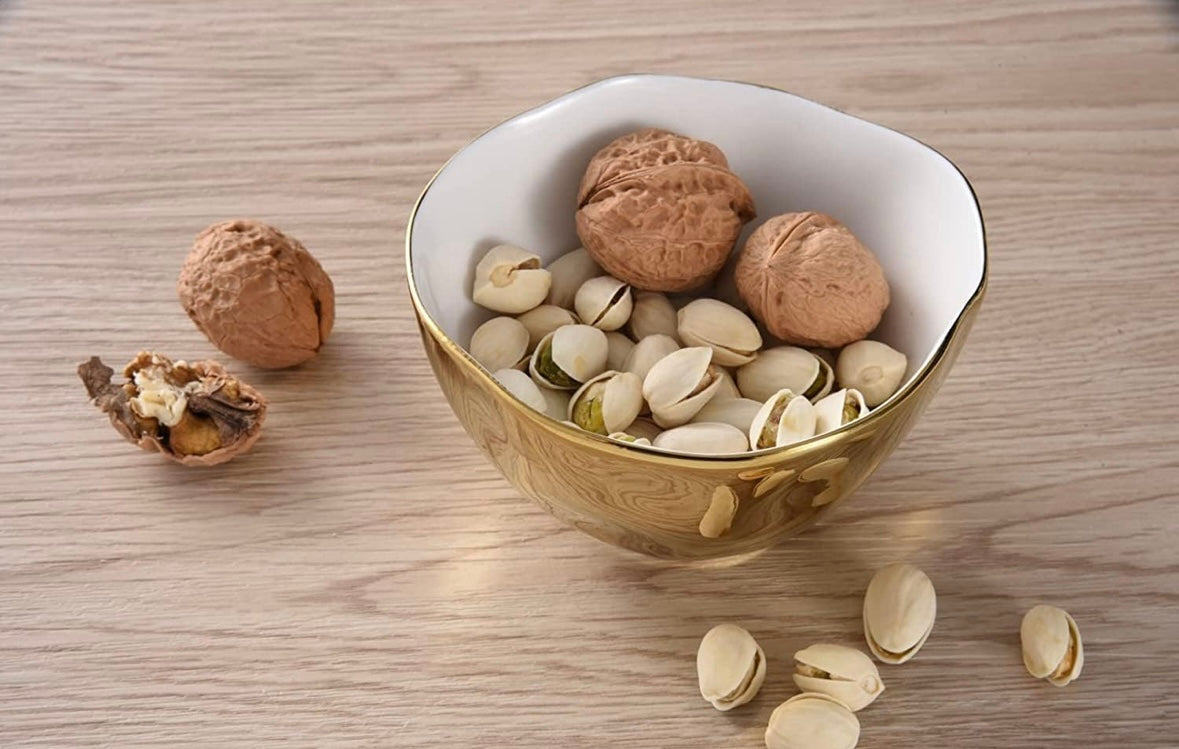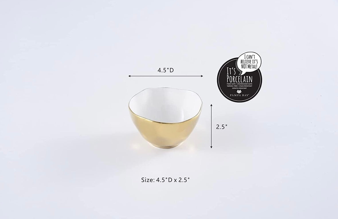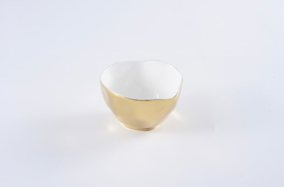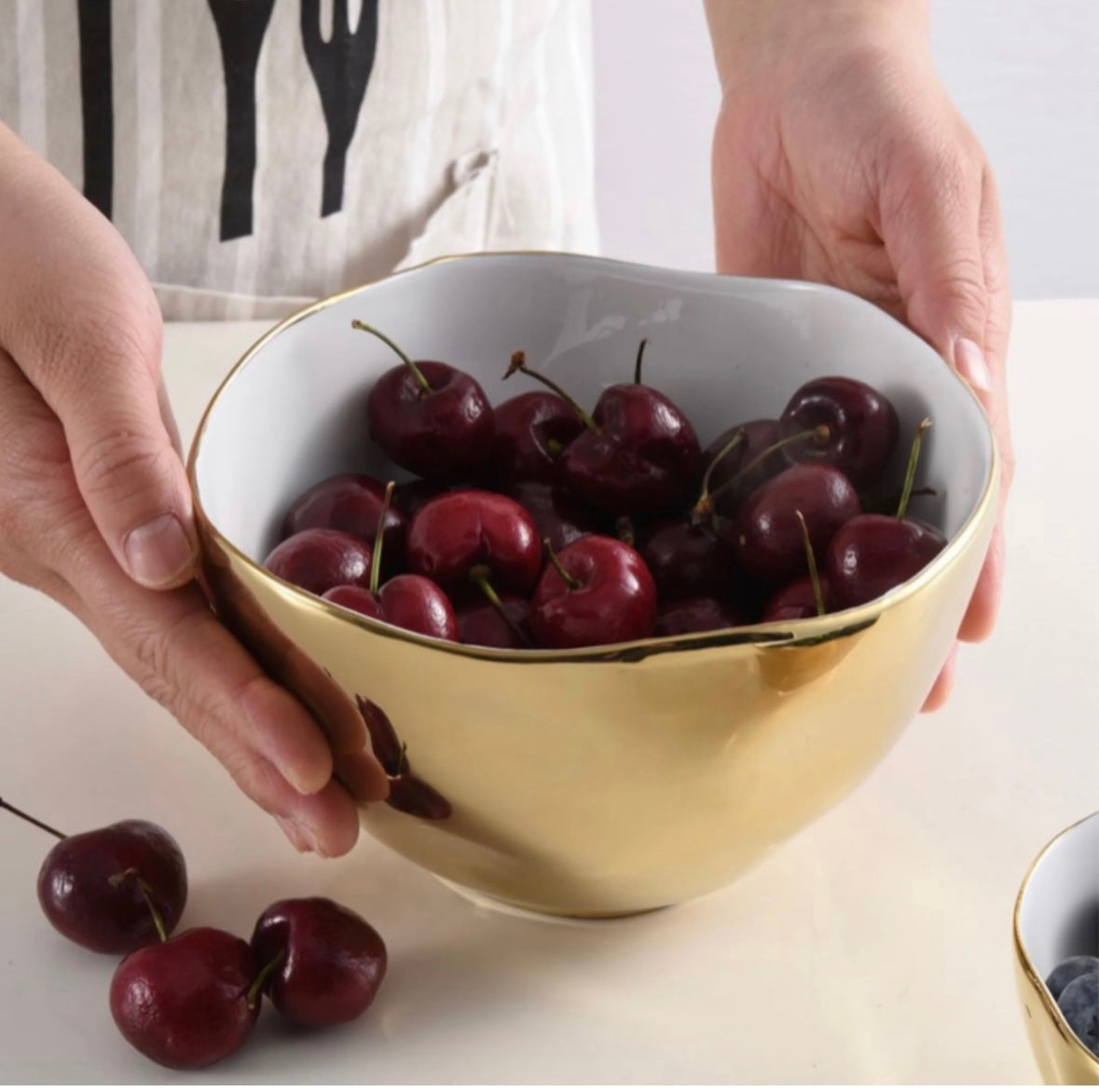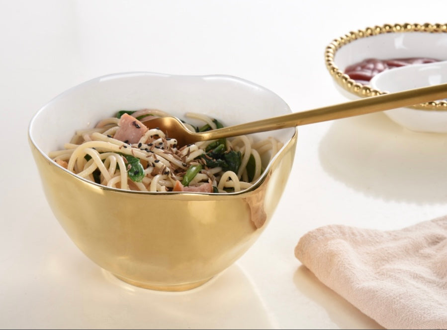 The Moonlight Bowl is porcelain serveware with a gold titanium-finished rim with an over-safe layer for extra durability. Its unique design and materials make it a must-have for any dinner party. Oven safe and dishawasher safe it is versatile and great looking