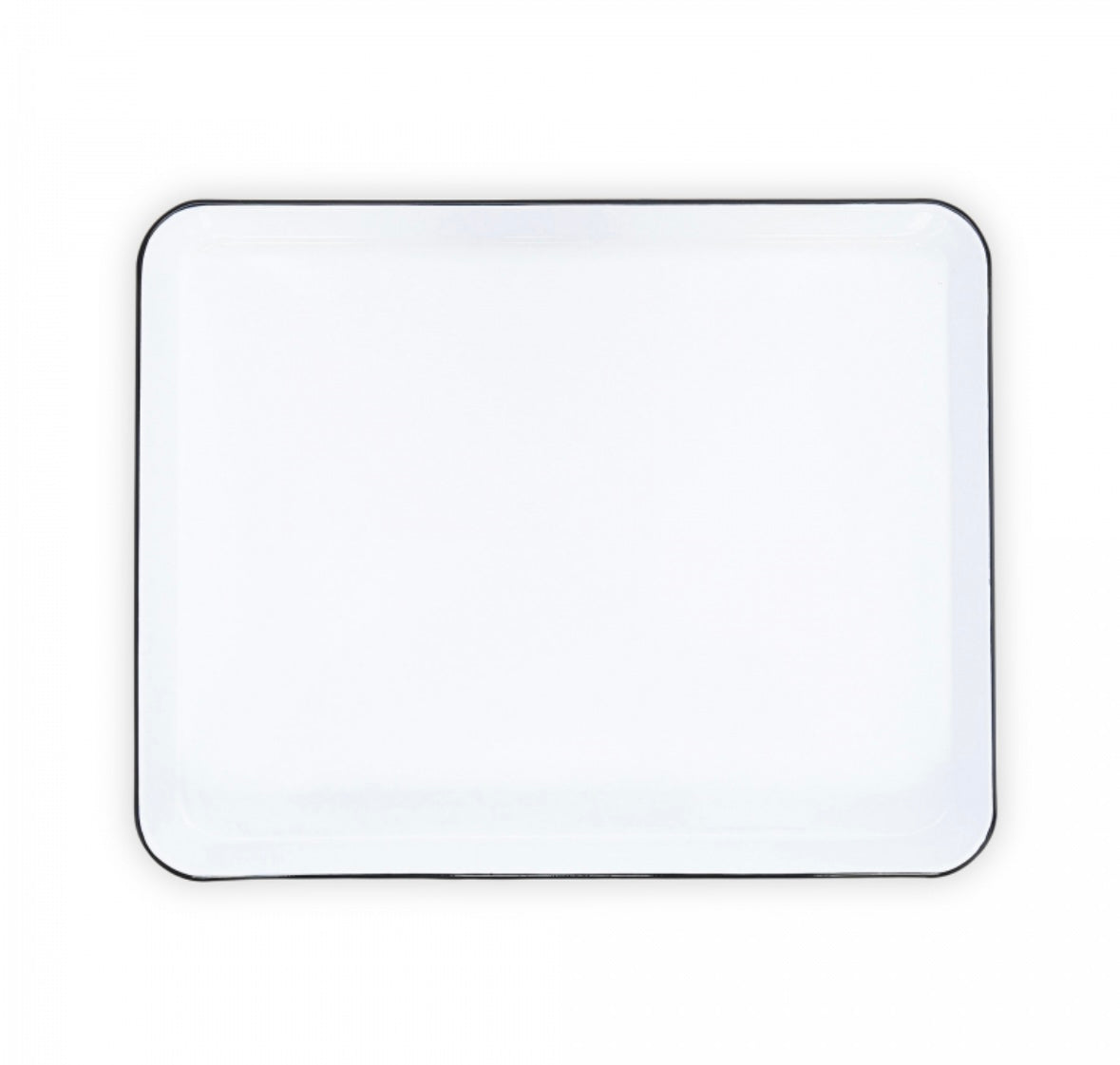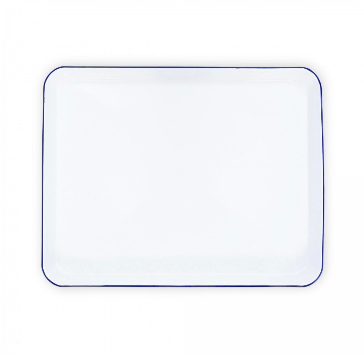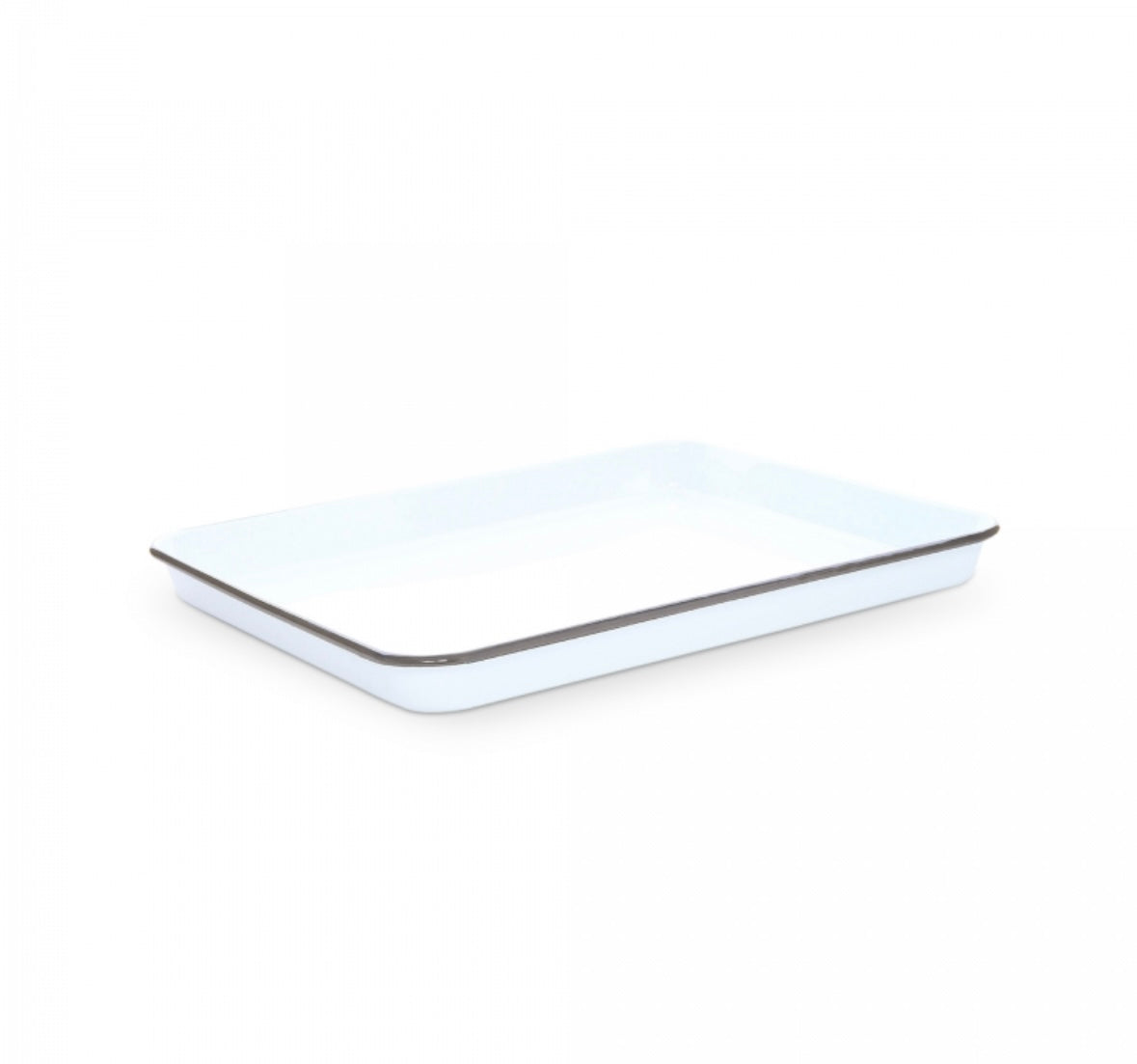 As durable as it is versatile, enamelware has long been a cook’s favorite in the kitchen. It moves easily from refrigerator to oven and stovetop- even to the barbecue or grill. The baked-on porcelain finish makes it easy to clean. 16 x 12.25" Rectangle tray / Sheet pan.